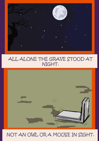 This was the comic book I designed. I followed the idea that when people are not given the funeral that they deserve they do not rest well. Hence I came up with the idea that Kyle is an ungrateful grandson who buried his grandmother without any respect, and very little care.